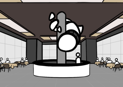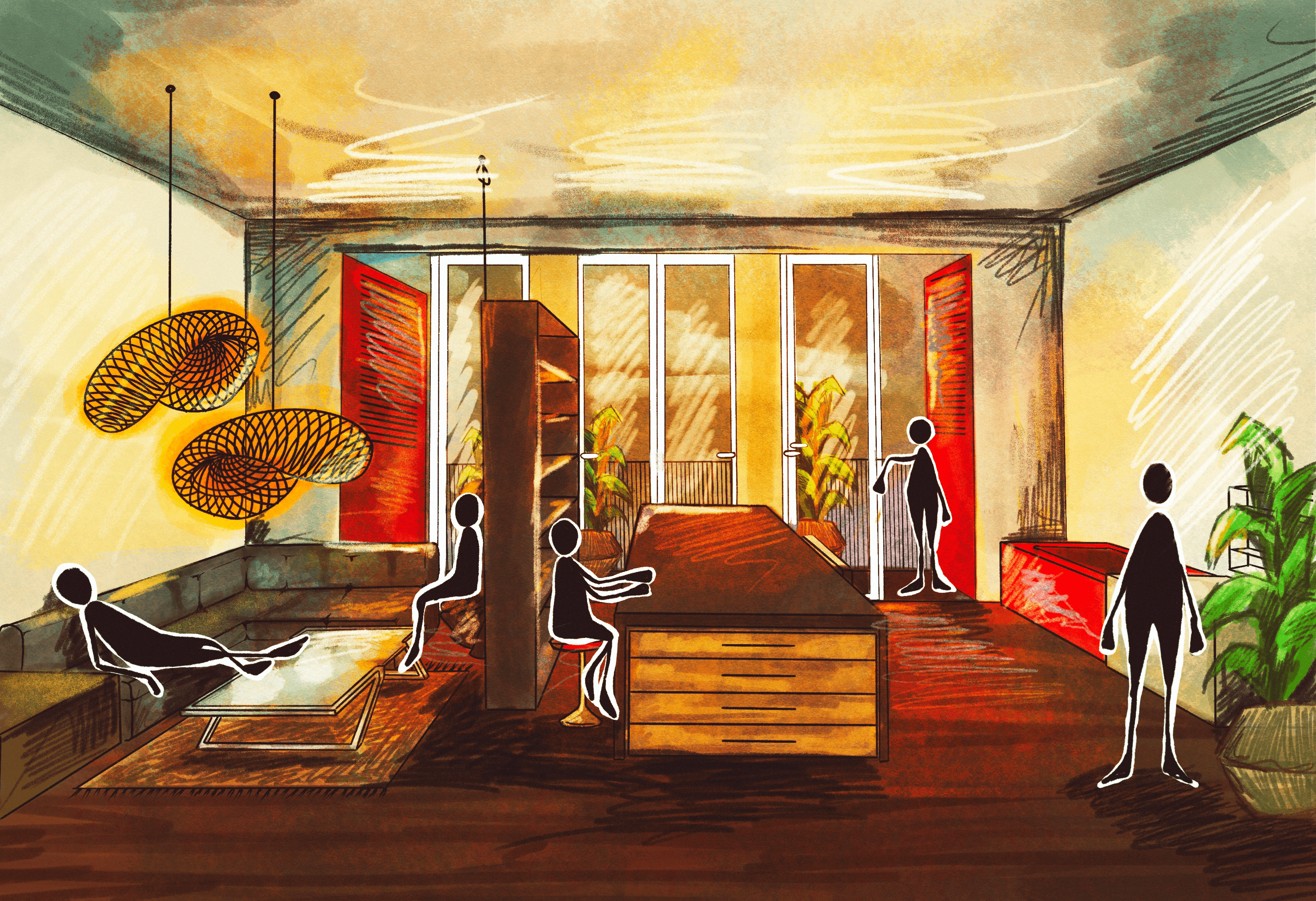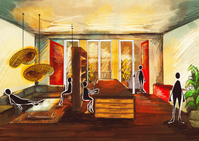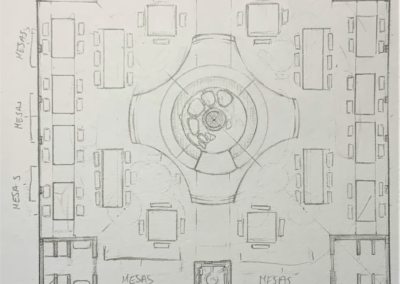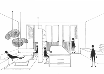 Partiendo de escenarios inventados (estudio de arte, hall de un hotel, restaurante, etc.) han organizado el espacio teniendo en cuenta los condicionantes físicos, técnicos, funcionales y psico-sociales. Sus principales objetivos en el diseño han sido la distribución y circulación, iluminación y elección de materiales. Teniendo en cuenta siempre la ergonomía y antropometría.
